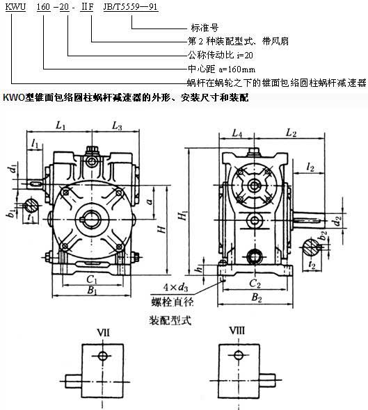 KW型锥面包络圆柱蜗杆减速器代号和标记方法