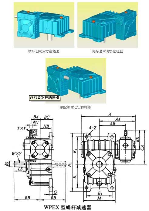 WPEX型蜗杆减速器主要尺寸 /mm